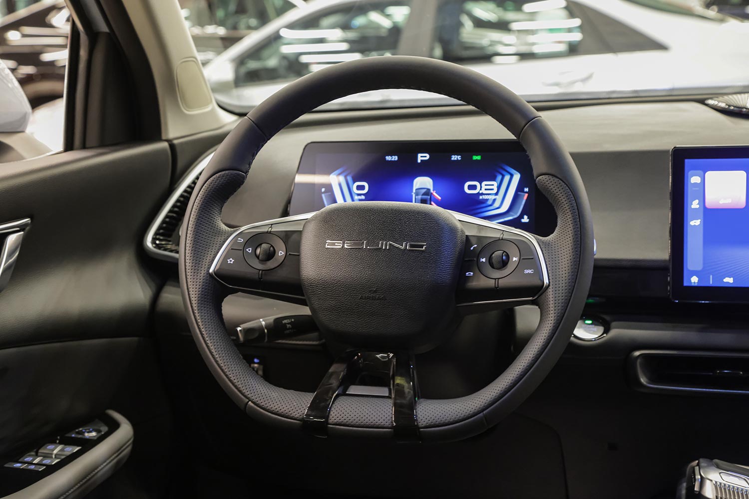 • عجلة قيادة مغلّفة بالجلد