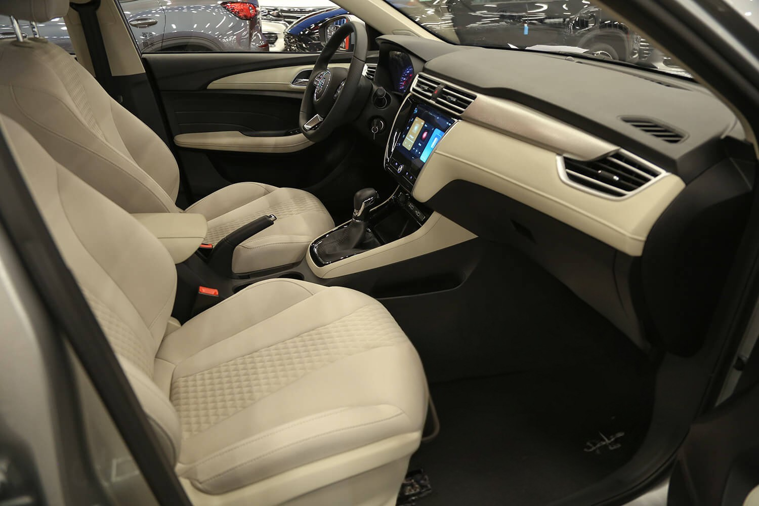 سعة المحرك 1.5 لتر ناقل حركة اوتوماتيك CVT بقوة 118 حصان نظام تثبيت السرعة شاشة معلومات أزرار تحكم بالمقود مقاعد مخمل تعديل المقاعد الامامية يدوي