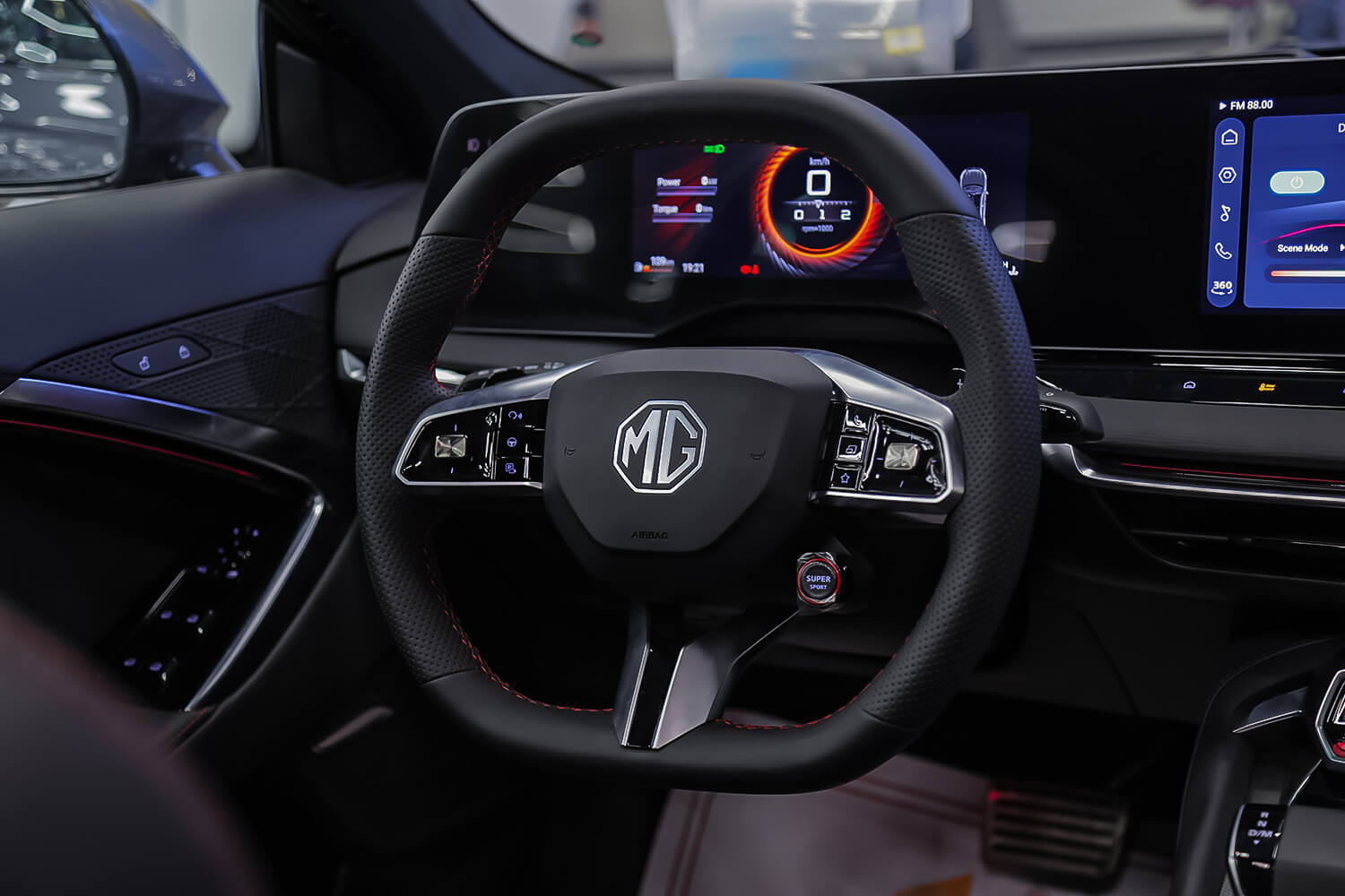 شاشة وسطية تعمل باللمس قياس 10.25 بوصة شاشة عدادات رقمية مقاس 12.3 انش إضاءة داخلية محيطية أبل كاربلاي و أندرويد أوتو زر تشغيل المحرك Super Sport زر الوضعية الرياضية على عجلة القيادة مبدل سرعات السرعة على المقود فتحات للتكييف في صف المقاعد الثاني عجله قياده مغلفه بالجلد اضاءة داخلية محيطية مقاعد جلد