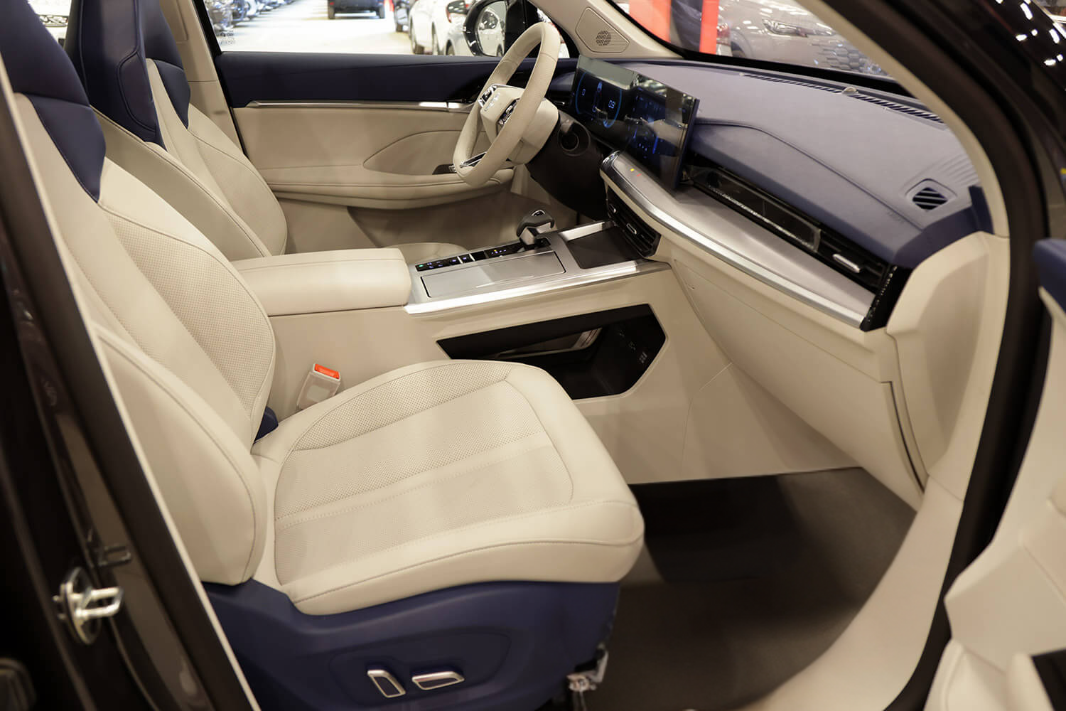 شاشة لمس امامية مقاس 12.3 انش + نظام الملاحة شاشة عدادات مقاس 12.3 انش أبل كاربلاي و أندرويد أوتو زر تشغيل المحرك فرامل يد كهربائيه فتحات للتكييف في صف المقاعد الثاني عجله قياده مغلفه بالجلد مقاعد جلد تسخين المقاعد الأمامية